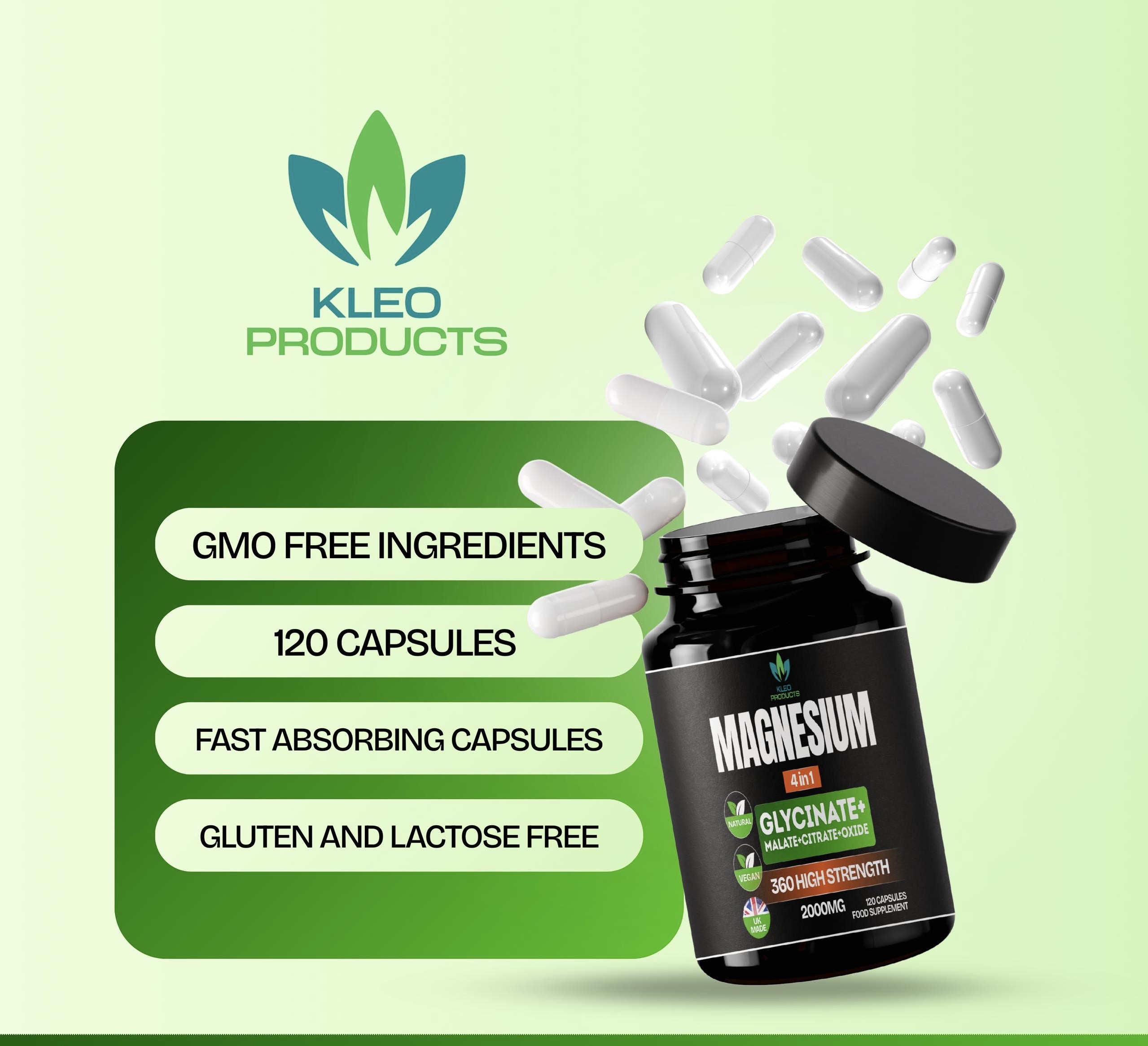 Magnesium Glycinate 2000mg , 4-in-1 Complex , High Strength Magnesium with 400mg Elemental, Contains Bisglycinate, Citrate, Malate, Oxide Plus Vitamin B6, 120 Vegan Capsules , Magnesium Supplement.