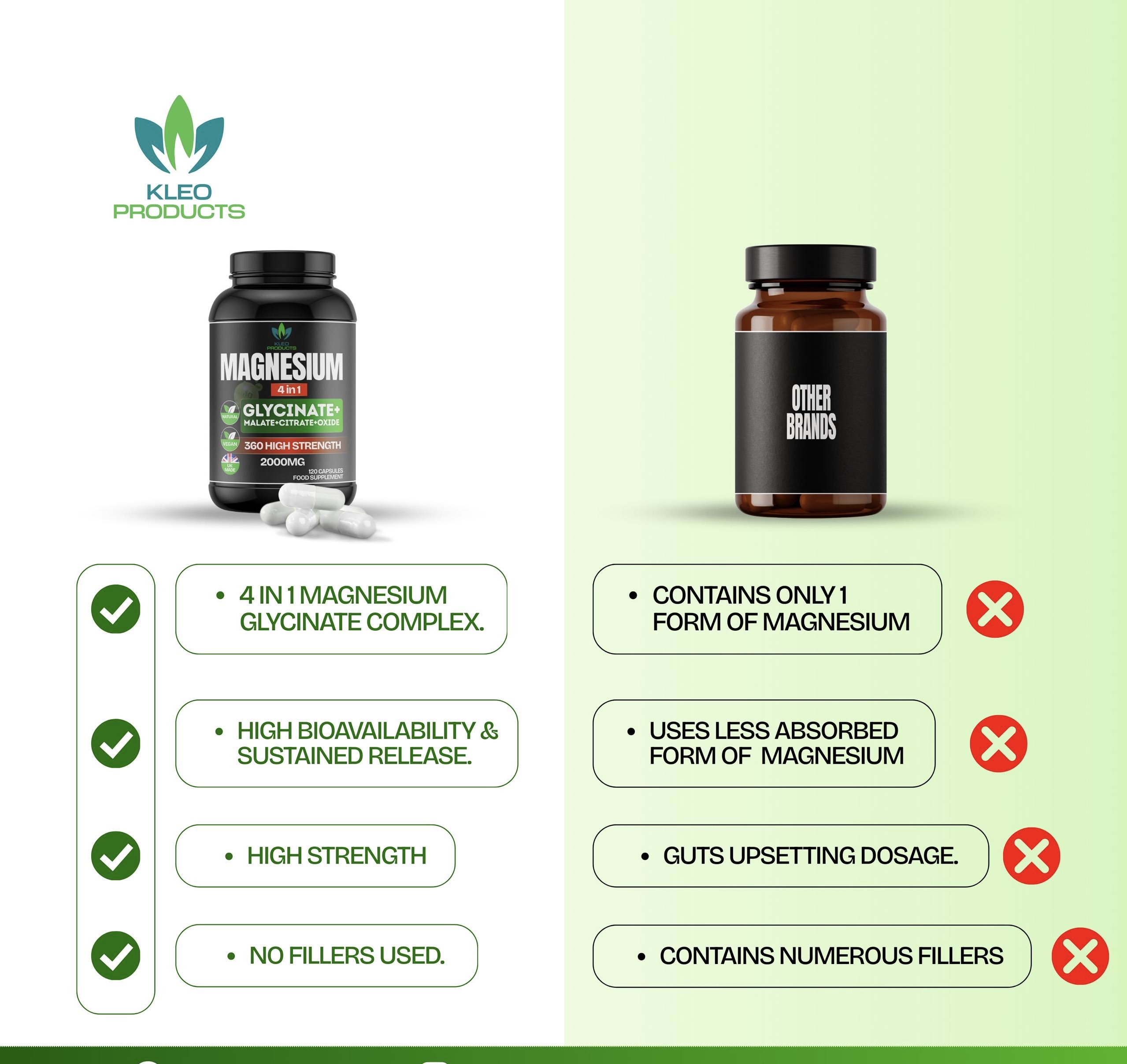 Our Magnesium Glycinate 2000mg supplement offers a highly bioavailable form of Magnesium, combining Magnesium with Glycine for improved absorption and gentle digestion. Known for its calming properties, Magnesium supports muscle relaxation, healthy bones, and optimal nervous system function. With 2000mg per serving, this powerful dose helps to replenish Magnesium levels, aiding in stress relief, muscle function, and overall well-being.