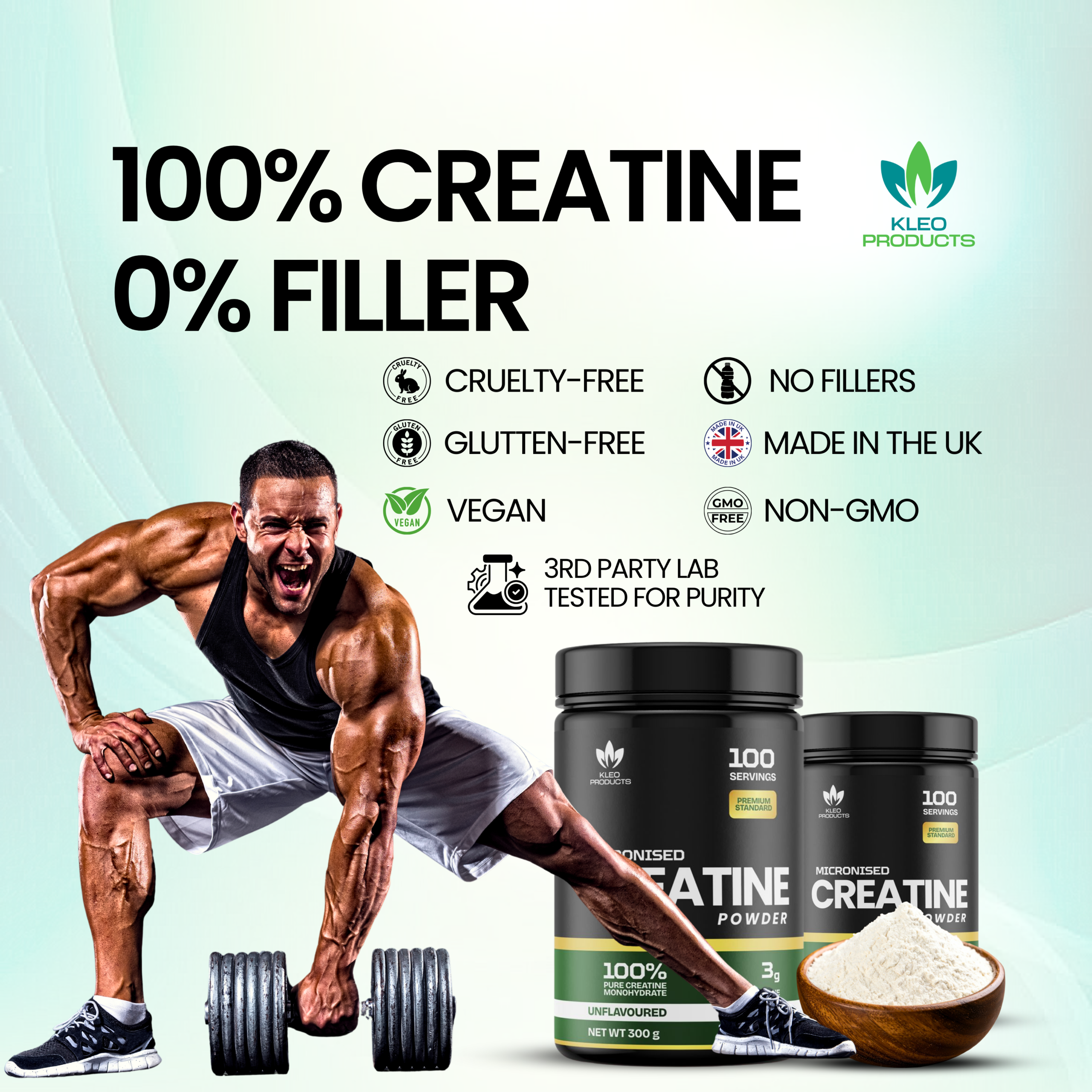 100% Pure Creatine – Our formula contains 100% pure, micronised creatine monohydrate with: No artificial colours, No flavours, No sweeteners, No fillers, No additives. Just clean, high-quality creatine powder you can trust.