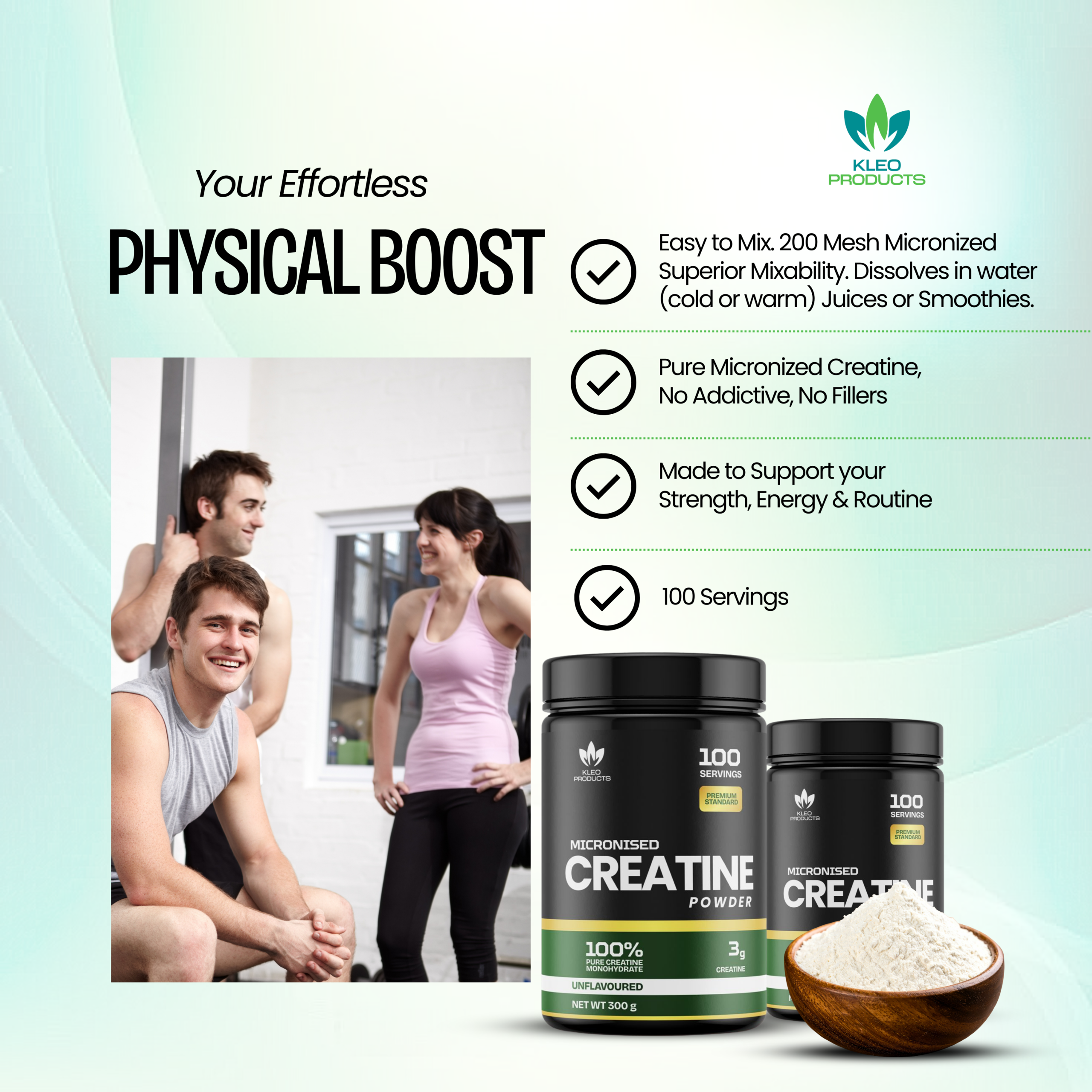 Pure Creatine Monohydrate Powder – 300g (2 months Supply), Micronised • Unflavoured • No Fillers • Maximum Performance, Boost High-Intensity Performance, Supports Muscle Growth, Support Cognitive Function, Faster Recovery Between Sets, Safe & Well-Researched.